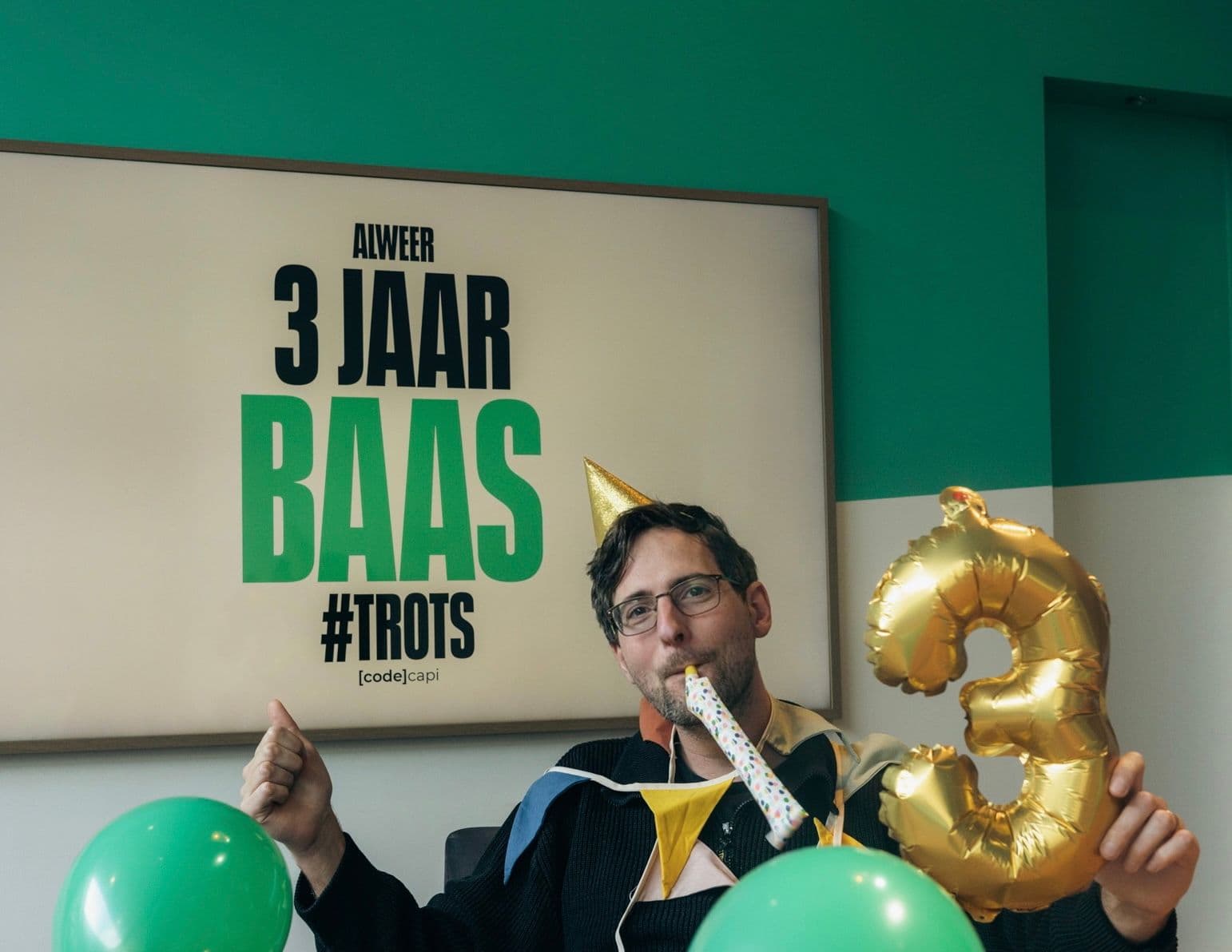 Tijd om de slingers op te hangen, want vandaag vieren we dat onze onze geluks-Capi, Tom Klaver alweer 3️⃣ jaar bij ons in dienst is! 🍀 Tom, je hebt ons team verrijkt met je geweldige vaardigheden, inzet en enthousiasme. Bedankt voor je toewijding en passie voor codecapi. We zijn ontzettend blij dat jij ons team compleet maakt!