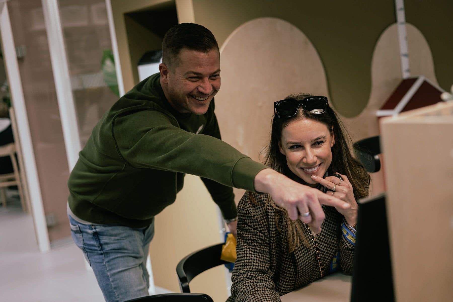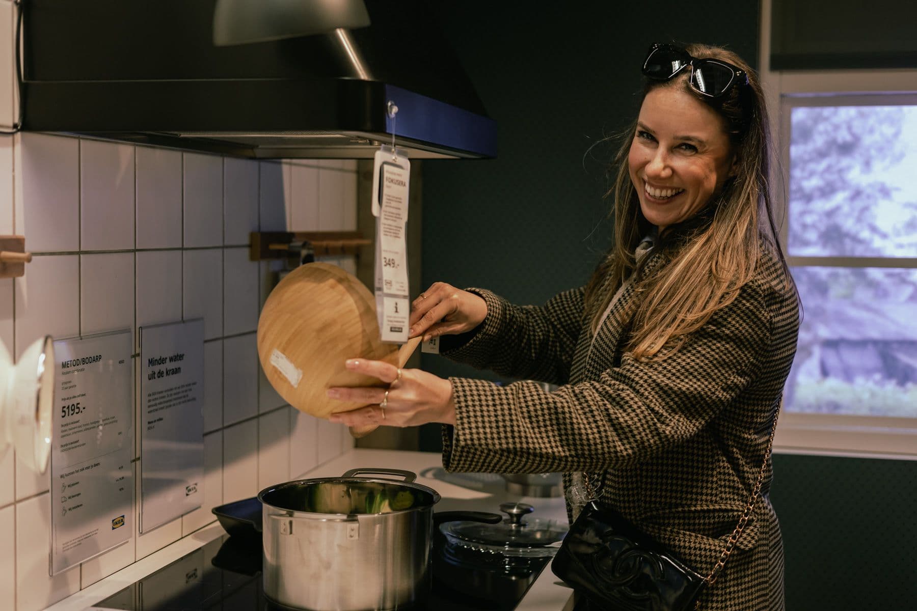 Naast dat ze een nieuwe keuken nodig hadden, wilde ze ook meer snijplanken, lampen en stopcontacten scoren. Jette wilde graag een leuke post maken voor op LinkedIn, dus had ze haar camera meegenomen om wat foto's te schieten tijdens de zoektocht naar een nieuwe keuken. Ze heeft Chris en Jennifer in verschillende kamers laten poseren en ze hebben ontzettend gelachen. Naast alle gekkigheid was het ze gelukt om een mooie keuken uit te kiezen.