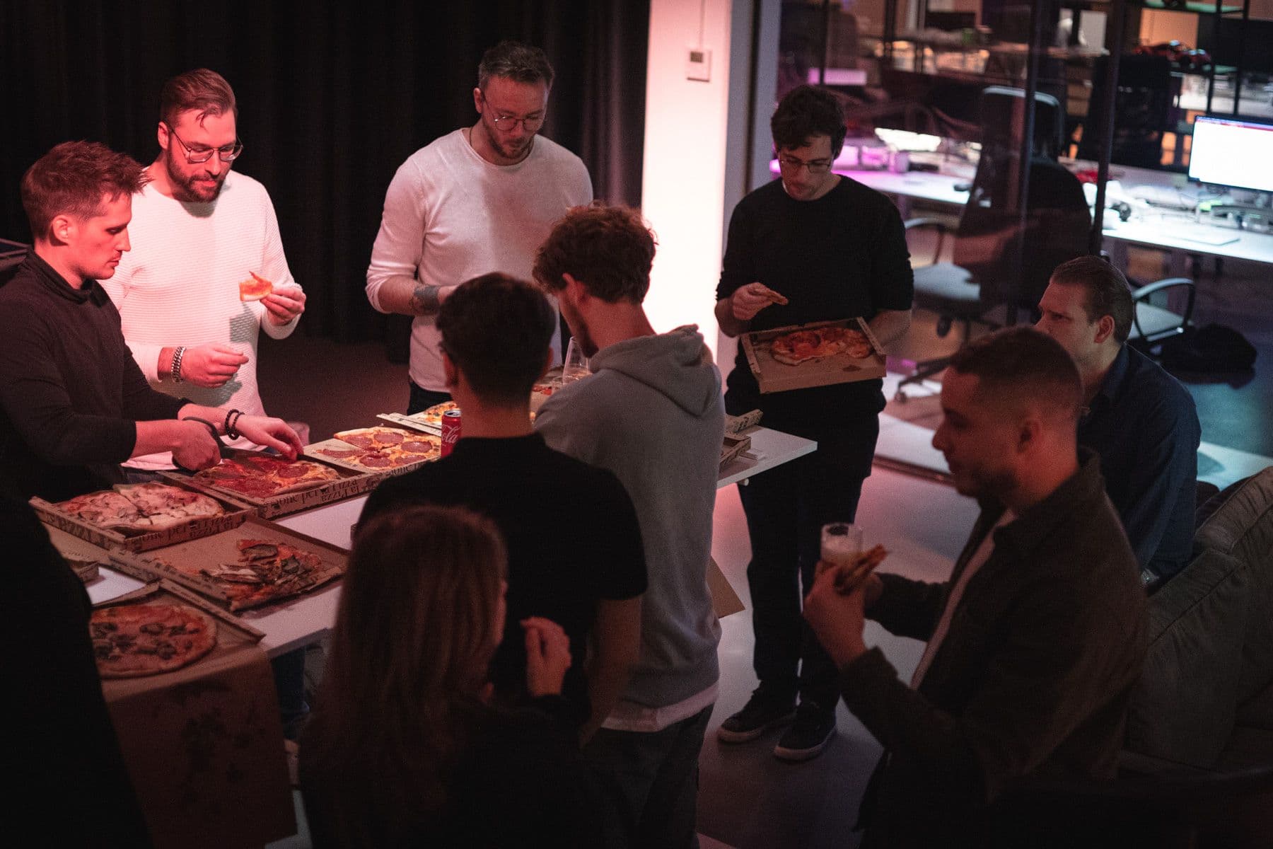 We begonnen de avond met overheerlijke pizza's en drankjes om de eventuele spanningen weg te nemen!