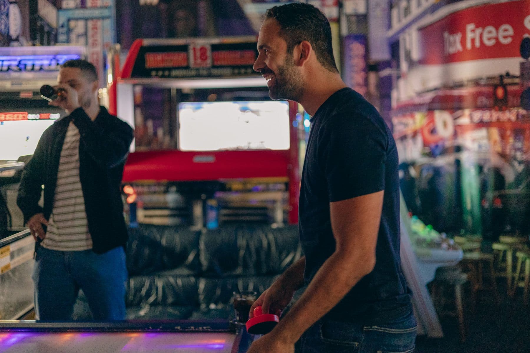 Eenmaal aangekomen bij Blast Galaxy leek het echt even alsof we in Japan waren. Er stond een mooie grote bar waar je heerlijke cocktails en hapjes kon bestellen en dat hadden we dan ook zeker gedaan. Toen was het tijd om te gaan gamen. De spellen die je kon spelen varieerden van schietspellen tot Mario Kard en skateboarden.