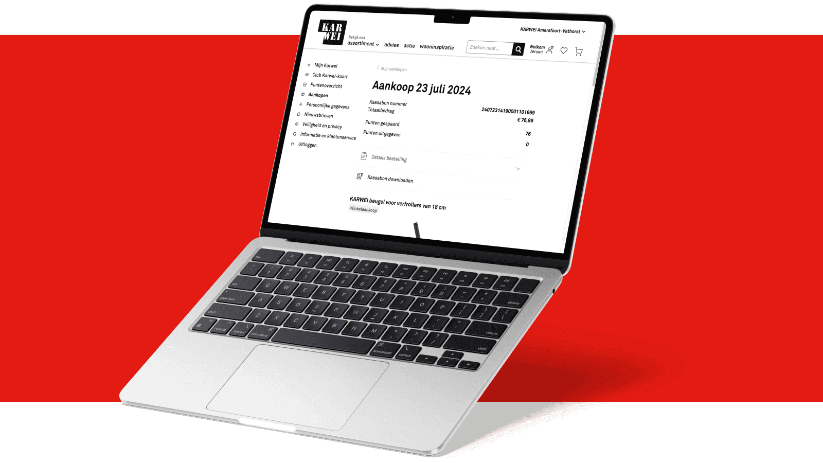 Jeroen richt zich voornamelijk op het verbeteren van de gebruikerservaring binnen de "Mijn omgeving". Hij houdt zich bezig met het aanmaken en beheren van klantaccounts en zorgt ervoor dat klanten hun aankopen kunnen scannen met een voordeelpas om punten te sparen die ze later kunnen inwisselen voor kortingen. Daarnaast zorgt hij voor een overzicht van aankopen, waarbij klanten hun aankopen kunnen bekijken, bonnen kunnen invoeren voor gemiste punten en maatwerkbestellingen kunnen beheren. "Ik had nog nooit eerder aan een 'Mijn omgeving' gewerkt, dus dat was voor mij een grote uitdaging" zegt Jeroen.