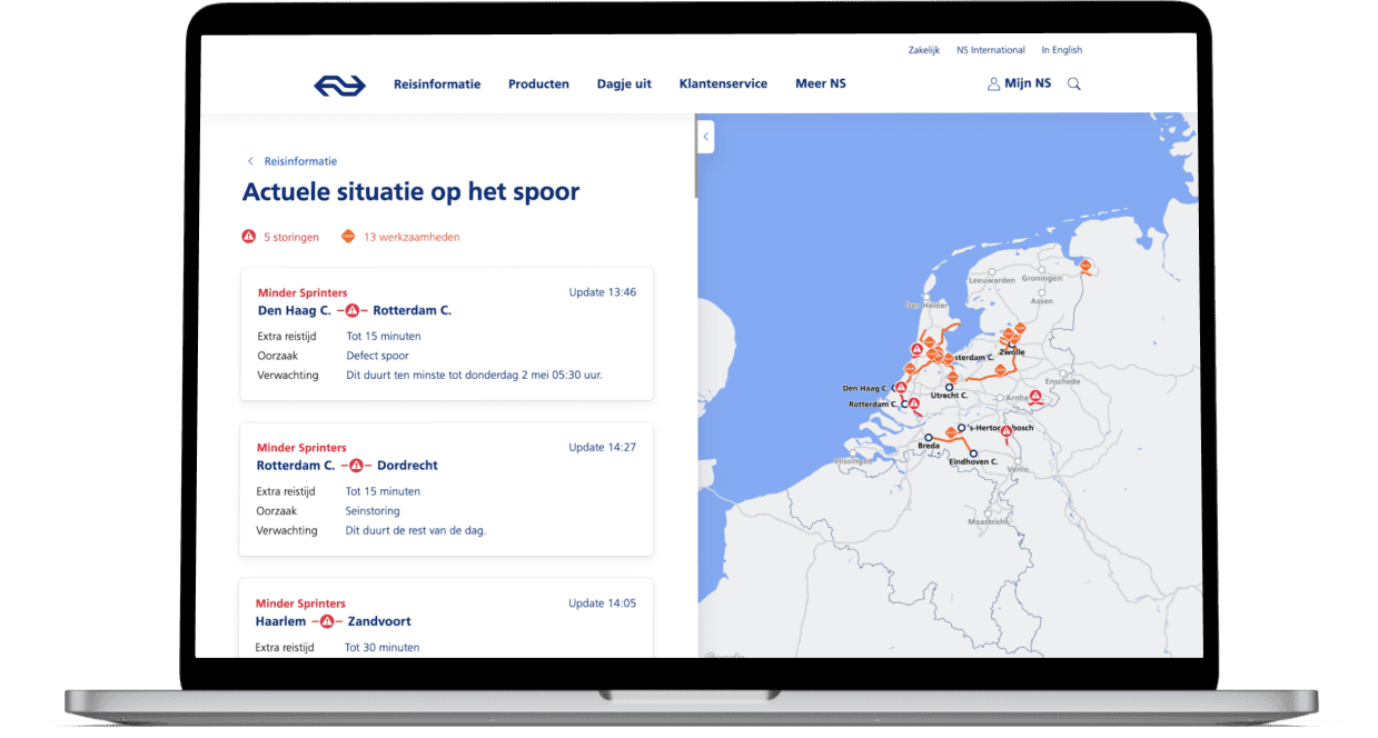 Binnen de NS kan er van alles misgaan op een dag. Denk aan treinen die uitvallen en wisselstoringen. Elk probleem verstoort de planning en hoe eerder een probleem zichtbaar is, hoe sneller het probleem is opgelost. Het team dat verantwoordelijk is voor het monitoren van problemen moet momenteel 20 applicaties open hebben staan om alle problemen in kaart te brengen. Om dit eenvoudiger te maken heeft de NS het doel gesteld om zo min mogelijk applicaties te gebruiken, zodat alles sneller zichtbaarder in kaart kan worden gebracht. Dit alles om het zo voor de klant (de medewerker van de NS) sneller en gemakkelijker te maken.